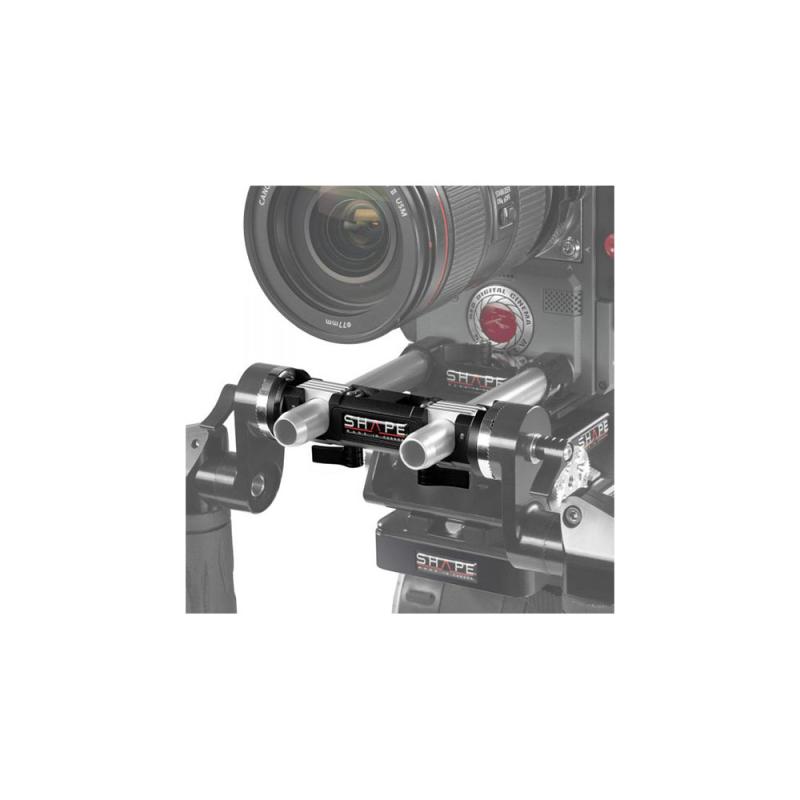 The SHAPE Arri rosette 15 mm rod bracket is designed to mount handgrips or other accessories on each side. It fits on 15 mm lightweight rods and feature ARRI rosettes on both ends. The ratchet knob and cuff system allow you to easily clip or unclip the block to your rig without ever having to remove accessories in front or behind (matte box, follow focus, lens support, zoom motors). The SHAPE cuff system allows you to quickly install your handles or other accessories in one clamp. By pressing the block below the rods and by locking the cuff with a ratchet knob, the cuff system is super strong, providing you with the most solid system on the market.