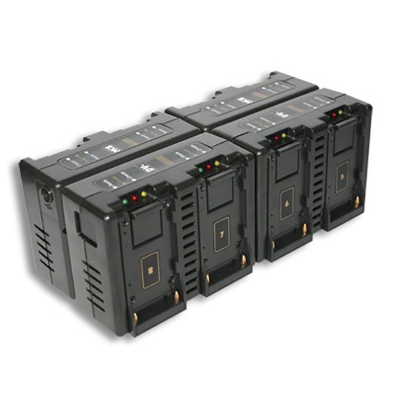 The DV-MC8 is an 8-Channel simultaneous fast charger that will charge up to eight Mini DV batteries in under 5 hours. It has been designed for use with our own DV-F970/DV-F980batteries and is also 100% compatible with the Sony NP-F series.