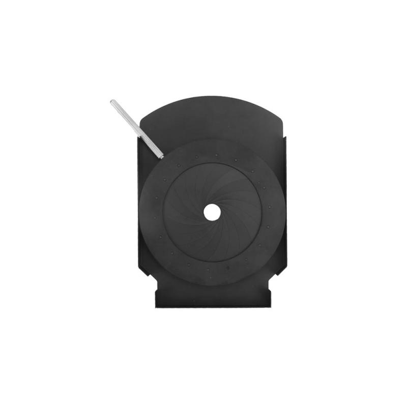 Drop-in design. The 18-Leaf Iris removable design works in conjunction with the Spotlights dual drop-in slot, and the Iris can be easily adjusted when inside the Spotlight housing.