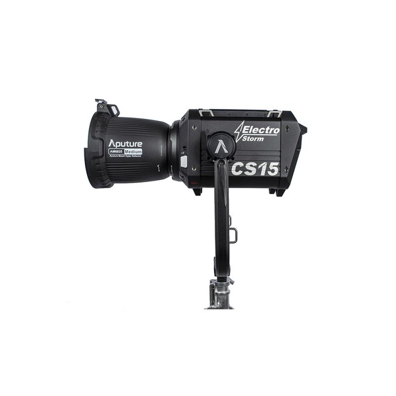 The Electro Storm CS15 is a 1585W high-output full-color point-source LED fixture with ultra-high color quality for professionals - featuring dual accessory mounts, professional connectivity methods, high SSI color quality, and an IP65 dust & waterresistant construction. At 1585W of intense power output, the Electro Storm CS15 is bright enough to be comparable to industry-standard 1800W HMIs and is the most powerful and color-accurate open-face full-color point-source fixture on the market to date. With dual accessory mounts, the Electro Storm CS15 features both the universal Bowens Mount and all-new electronic Aputure Mount compatibility, making it one of the most adaptable fixtures on the market.