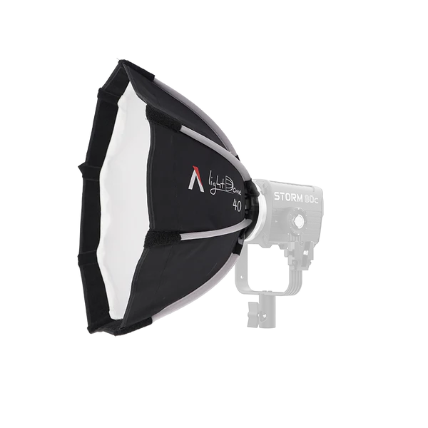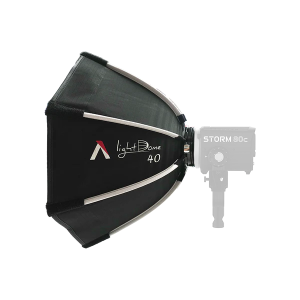 The Light Dome 40 is a circular mini softbox with a 40cm diameter diffuser. It features a Mini ProLock Mount to attach to the STORM 80c. The Light Dome 40's folding structure is designed to assemble quickly and fold for storage just as fast.
