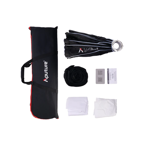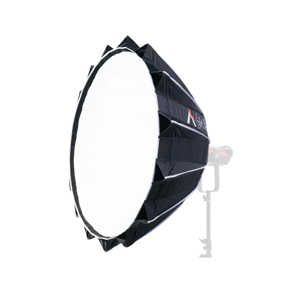The Light Dome III is a circular 90cm (3 foot) foldable softbox compatible with any Bowens Mount LED fixture. The 32-sided design allows for circular reflections. The foldable speed ring packs flat to save space and makes builds extremely quick. Includes 1.5 stop and 2.5 stop front diffusion, and a 40deg light control grid.