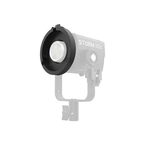 The STORM 80c Bowens Mount Adapter is a metal accessory mount adapter that allows users to pair traditional Bowens Mount accessories to Mini ProLock, making them compatible with the STORM 80c. Recommended Aputure Bowens Mount accessories to adapt for use with the STORM 80c using this adapter include the Light Dome Mini III, Light Dome SE, and Lantern.