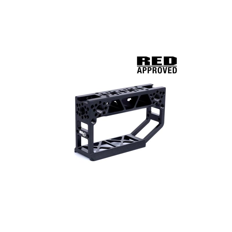 ARCA Top Handle is a lightweight sliding camera handle that attaches to ARCA Top Mount (RED Komodo, Komodo-X, V-Raptor) , Upper Cages, Burano Top plates, PYXIS, and Ursa Cine, and has 1/4-20 and 3/8-16 mounting holes with ARRI locating pins in standard spacing. M4x20mm threaded holes available on multiple sides for attaching Rod Bracket (15mm LW) or other ARRI M4 accessories. Hot shoe mount on the front and rear for on-camera lights, microphones, and other shoe accessories.