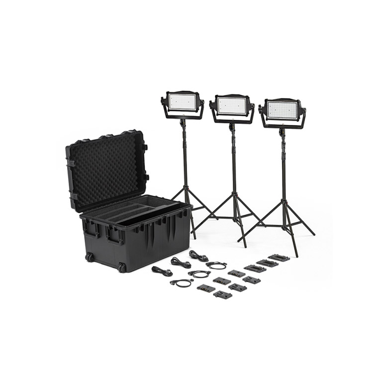 This 3-light kit provides the essentials for location shoots in a rugged, waterproof Pelican case that's ready for the road. It includes three Astra IP Half fixtures, each with a light stand and battery brackets for Gold Mount and V-Mount batteries.
