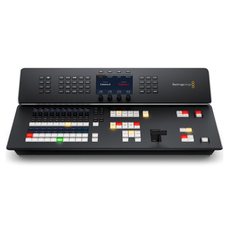 ATEM Television Studio HD8 is a compact live production switcher with built in broadcast control panel. Get a fully featured broadcast quality live production studio with 8 standards converted 3G-SDI inputs, built in streaming, master recorder, multiview, USB webcam support, DVE, 4 ATEM Advanced Chroma Keyers, media players, talkback, 4 way Ethernet switch and optional internal cloud media storage.