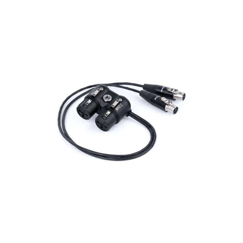 Audio Breakout AB-7 (ARRI Sonosax AEM-1, Dual Mini XLR Female) is a passive adapter that converts the ARRI Alexa 35's Sonosax AEM-1 dual mini XLRs to two standard, full-size XLRs.