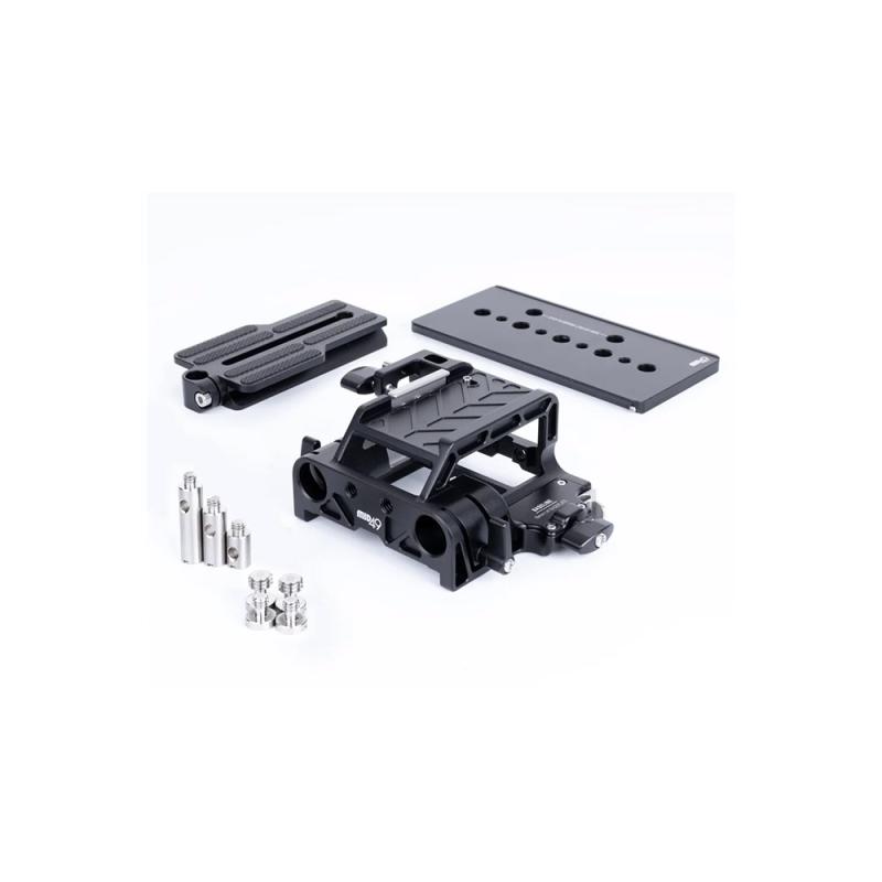 Baseline 15mm LW (RED KOMODO, KOMODO-X / Blackmagic Pocket 4K / FREEFLY Ember S5K Baseplate) is a baseplate that holds 15mm lightweight rods at the correct distance from the center of the lens on the listed cameras.