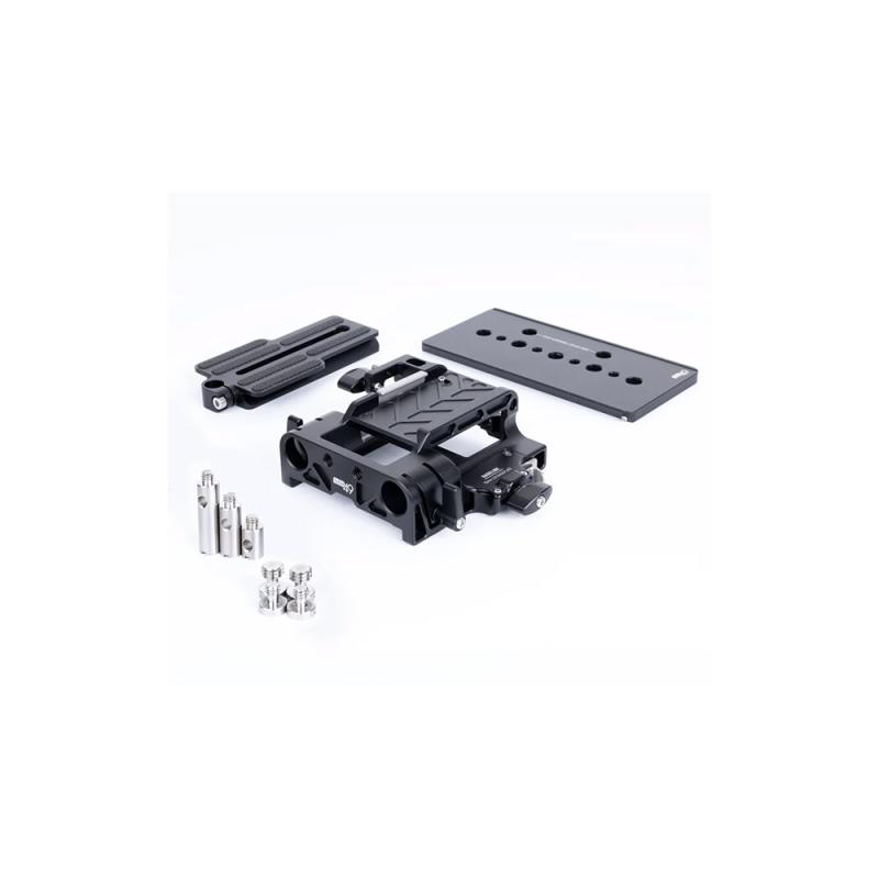 Baseline 15mm LW (Sony FS5, Panasonic EVA1, VariCam LT, VariCam 35 Baseplate) is a baseplate that holds 15mm lightweight rods at the correct distance from the center of the lens on the listed cameras.