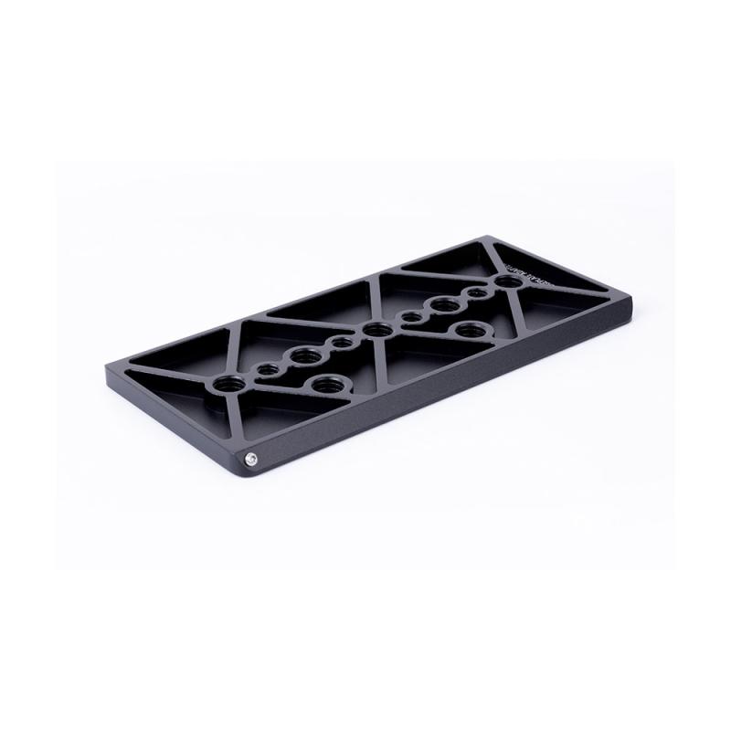 Attaches to tripod plates or ARRI standard bridgeplates with centered or offset screw spacing. 1/4-20 and 3/8-16 threaded holes available in standard spacing.