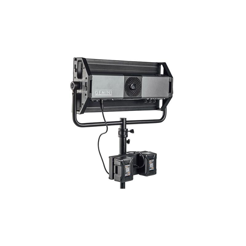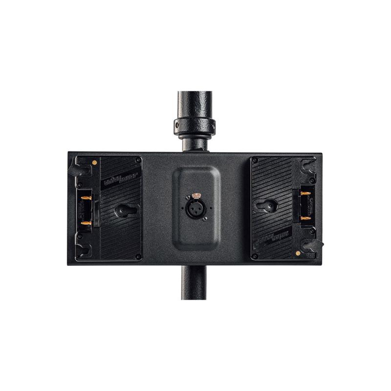 Power your Gemini fixture from two Gold-mount batteries via this dual Gold-mount battery bracket. The bracket is fitted with a SuperClamp mounted on the back for quick attachment to a lighting stand or similar, includes 3-pin XLR cable (120 cm).