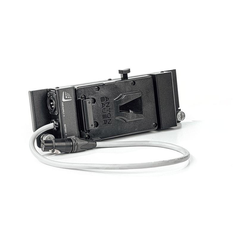 The V-Mount Battery Bracket for Gemini 1x1 Panel from Litepanels accepts one 14.4V broadcast camera batteries that allow the Gemini 1x1 to run at 100% power. For on-set flexibility, the bracket mounts directly on the fixture. A 3-pin XLR cable is included.