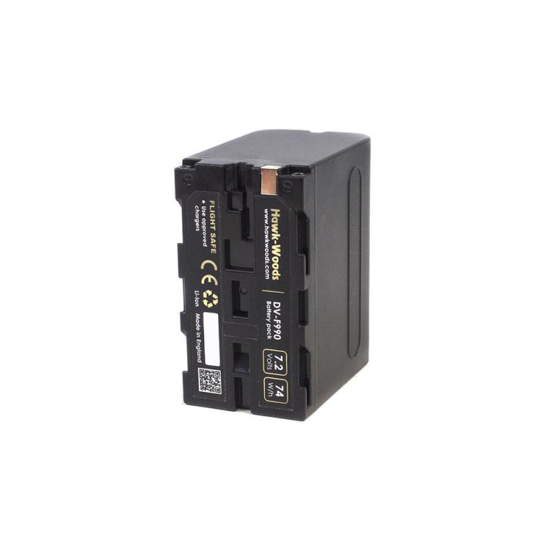 The Hawk-Woods DV-F990 Lithium-Ion Mini-DV Battery works as a direct replacement for Sonys NPF battery.This is a 6 cell battery, 10200mAH, 74Wh!
