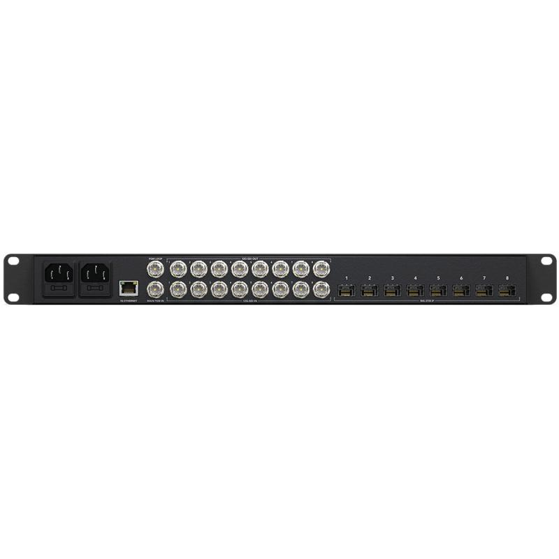 Blackmagic 2110 IP Converter 8x12G SFP lets you add SMPTE-2110 UP video to 12G-SDI broadcast equipment. It features 8 independent bidirectional 12G-SDI to SMPTE-2110 IP video converters using SFP modules for compatibility with optical fiber Ethernet modules for long distances. Its 1RU design includes and control panel with LCD and support HD and Ultra HD standards up to 2160p60.