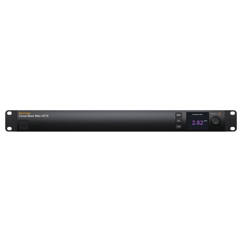 Blackmagic Cloud Store Max 48TB is an extremely high performance flash storage solution in a compact 1RU design. Cloud Store Max features 48TB capacity 12 card RAID 0 flash memory core, 4 x 10G Ethernet, 100G Ethernet, QSFP connection for high speed copper cables or longer optical fiber cables, USB-C and Blackmagic Cloud sync for distributing files globally. It's fast, even with lots of simultaneous users all accessing files at the same time!