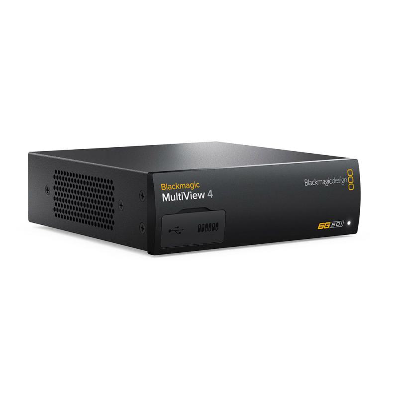 Blackmagic MultiView 4 is a multi viewer that lets you monitor 4 completely independent SDI video sources on a single display! Featuring 4 6G-SDI inputs with full re-synchronization, MultiView 4 lets you monitor any combination of SD, HD and Ultra HD video formats and frame rates all at the same time. Blackmagic MultiView 4 can output to both 1080 HD and 2160p Ultra HD displays so you connect it to either regular HD or Ultra HD televisions. If you connect an Ultra HD television or monitor, you can take advantage of the extra resolution of Ultra HD and see full resolution 1920 x 1080 HD in each view for incredible sharpness! You can even turn on audio meter overlays, custom labels and more in each view.