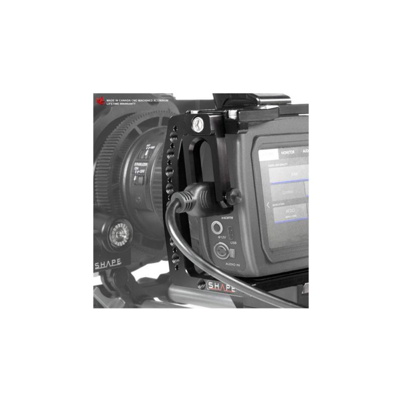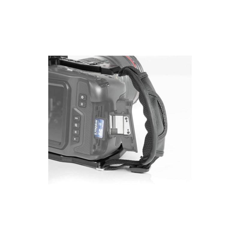 The Camera Cage for Blackmagic Cinema Camera 4K from SHAPE provides a formfitting base for attaching accessories, handles, or grips to your BMCC 4K. All controls, ports, and slots remain accessible when the cage is mounted to your Blackmagic Cinema Camera 4K. It gives you easy access to the memory card, the battery door, the lens release button and all other controls and outputs. The cage is designed with one cold shoe at the top to mount accessories like a microphone, magic arm (RPB2AHS), LED or Top Handle (DTH1). There is also multiple 1/4?-20, 3/8?-16 threaded holes with ARRI anti-twist threads to strongly secure the camera and accessories in place. Constructed from lightweight yet sturdy CNC-machined aluminum, the cage includes a left-side clamp to prevent your HDMI cable from accidentally disconnecting. A padded hand strap adds comfort when grasping the right side of the camera.
