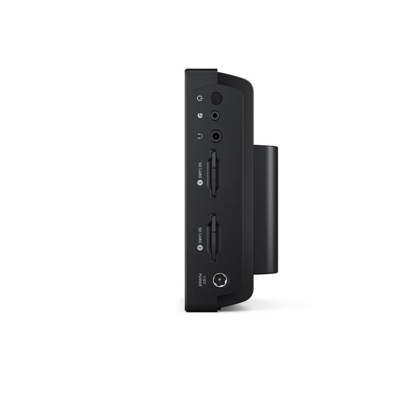 The larger 7" model includes all the features of the 5" model, but has a much larger screen. This model has 2 SD Card slots so recording can continue when a card becomes full. There are also 2 mini XLR audio inputs with phantom power so you can connect and record direct from microphones.