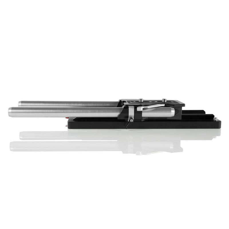 This lightweight and strong aluminum body ARRI Standard 19 mm Studio Bridge Plate slides onto an ARRI Standard Dovetail Plate and uses 19 mm rods (12 in.) (rods spaced 104 mm center to center).