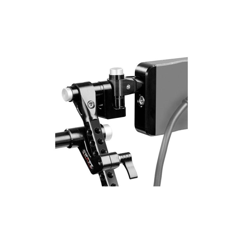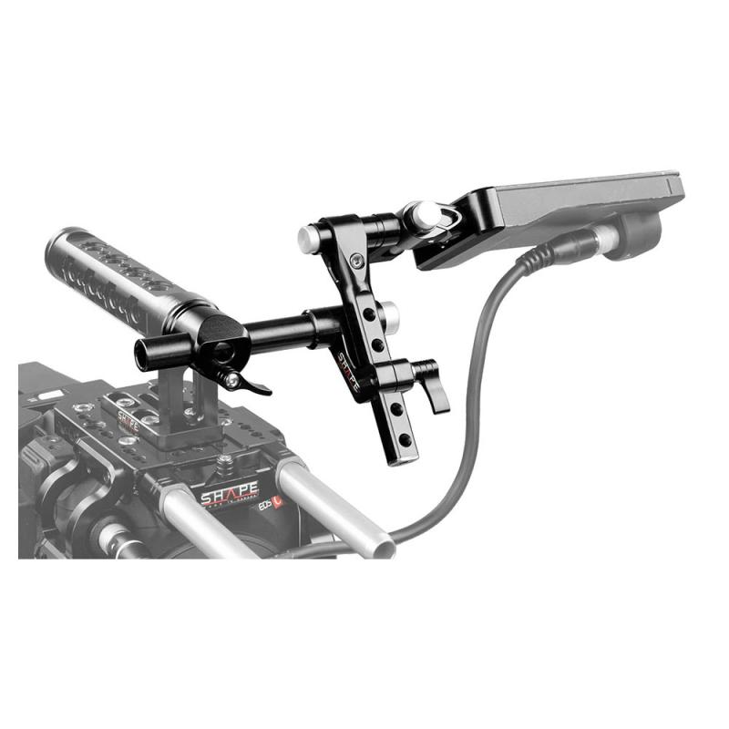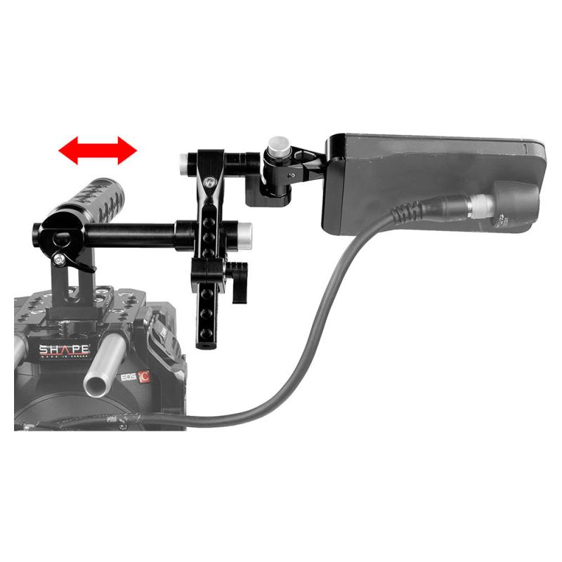 The Push-Button Viewfinder Mount is designed with a 15mm rod with push-button and a L-bracket viewfinder clamp with ratchet knob. The 15mm rod is compatible with the Canon EOS C500 Mark II camera handle or any 15mm mounting hole. It features two points of articulation for horizontal, vertical, and transversal adjustment of your viewfinder. By simply pressing the SHAPE patented push-button, you are allowed a 360-degree rotation to place your view finder in the best position for your use. Push, adjust, release, and then its lock.