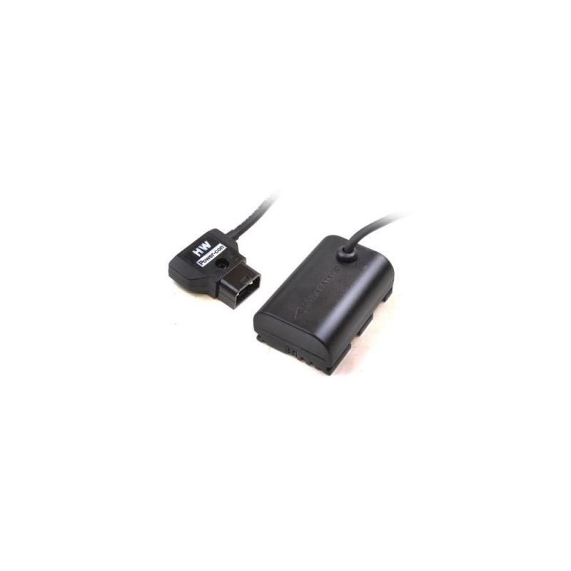 Hawk-Woods LR-12A LP-E6 dummy battery. Please note this cable exits from the top of the dummy battery, rather than the side, in order to fit the newer Zacuto models, Blackmagic equipment and various other brands.
