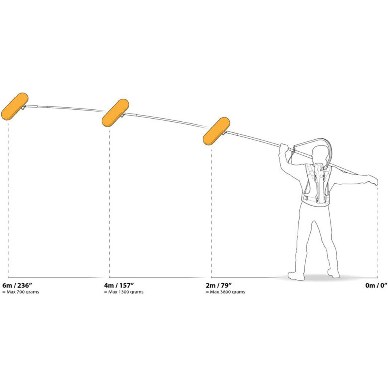 By turning the knob in the back, the Boom Rig can be adjusted to fit your boom perfectly. It can take weights between 2.5-10 kg (5.5-22 lbs).
