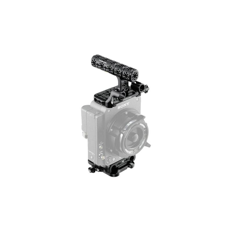 A full-featured Sensor Cage System that includes a lens-centered Baseplate, Top Plate, 15mm Dual Rod Clamp, and Ultra Carry Handle. Integrates seamlessly with the VENICE 2 Baseplate, Riser, Top Plate, and Rods, allowing seamless integration of Rods and Camera Dovetails while maintaining the same low-profile footprint and optical center.