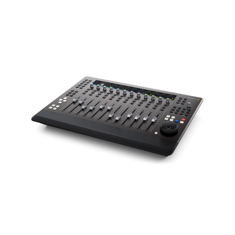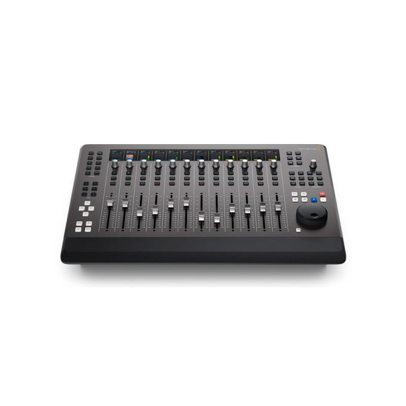 Fairlight Desktop Console is an audio mixing control surface that allows you to mix multiple tracks at once! You get a familiar mixer design with 12 motorized faders, touch sensitive encoder knobs and illuminated buttons. The faders are extremely smooth to move and provide the perfect amount of resistance, allowing subtle adjustments. The console’s controls can be used for functions including pan, solo, mute, dynamics, EQ, plug‑in parameters and more. Each channel strip LCD displays meters, panning, track name and more. An HDMI output gives you instant graphic feedback for all channels, bus and effects from the desktop console.