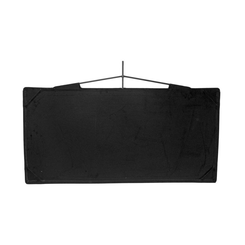 Flags are square or rectangular frames with mounting pins attached. Used to control natural or artificial light. Can be used to protect the camera lens from flares, control spill light from other sources, or keep light from reaching an area on the set.
