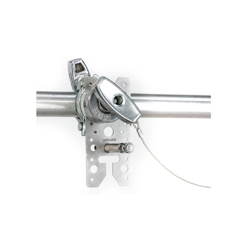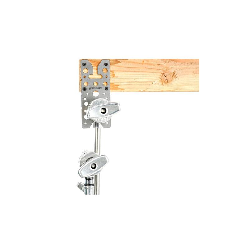 Gobo Plate™ is a simple and versatile mounting adapter that adds compatibility to your gear. From camera equipment to building materials like lumber, Gobo Plate™ offers a wide array of mounting options. Designed to interface with any 2.5” grip head, Gobo Plate™ has thoughtfully spaced holes for bolting on pins, ball heads and other camera accessories, as well as holes that allow the plate to be screwed or nailed to lumber, apple boxes, overhead beams, set walls and more. Gobo Plate™ mounts to stand risers and cart legs— ready to add efficiency and versatility to your gear.