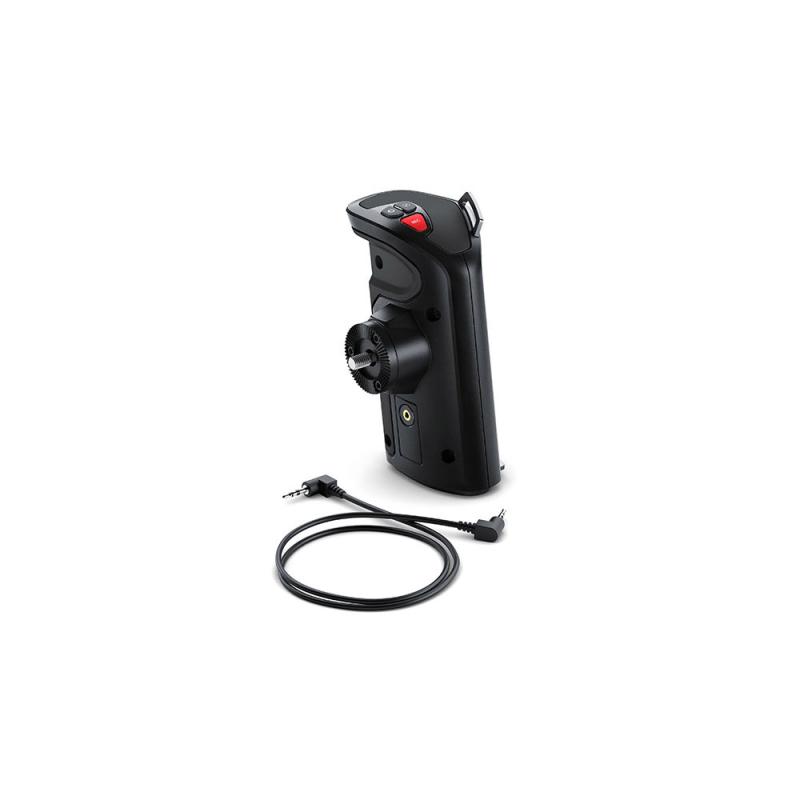 Optional side hand controller for URSA Mini Pro with record start/stop, iris and focus buttons built in. Standard rosette and LANC for attaching to the side of the camera or relocating it to the front of the camera with the URSA Mini Shoulder Kit.