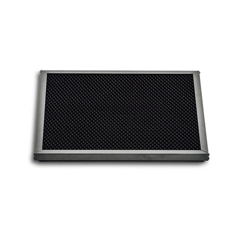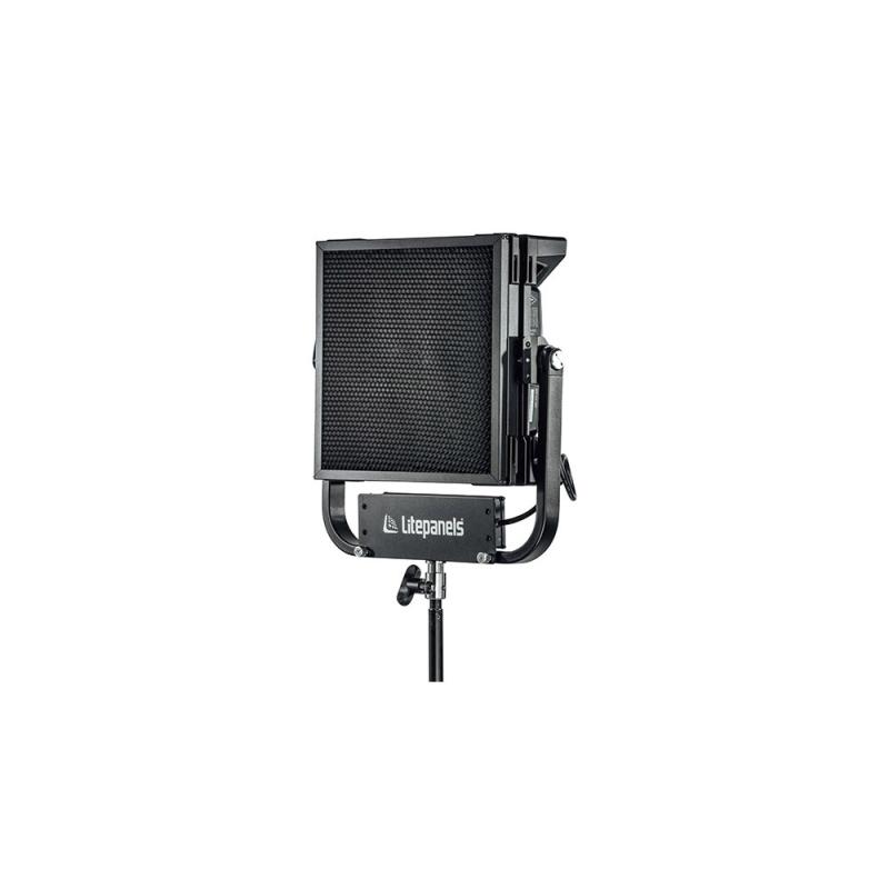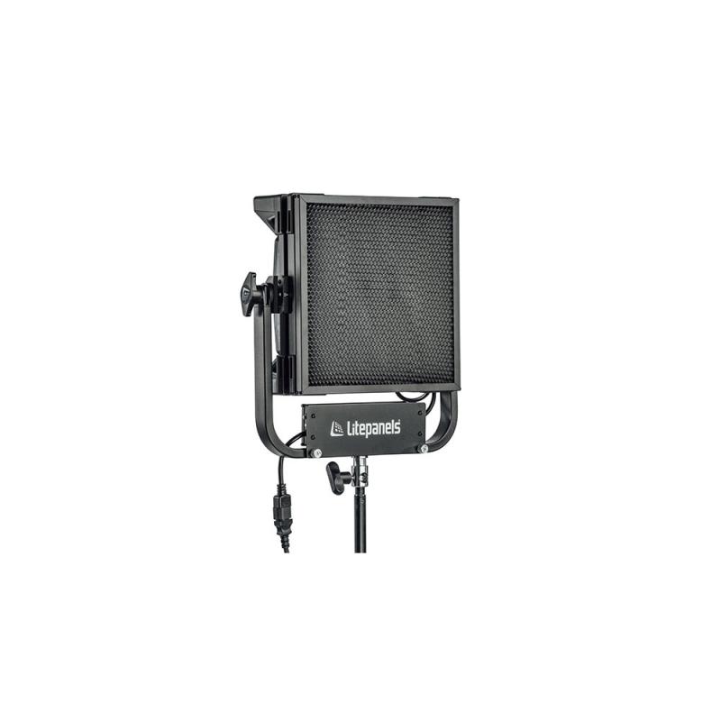 The Honeycomb Grid for Gemini 1x1 Soft panel from Litepanels narrows the Geminis 95-degree beam angle to 60 degrees to direct the light to specific areas and eliminate spill light.