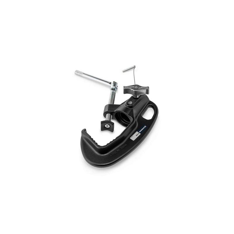 This junior pipe clamp from Avenger works on diameters from 20mm to 55mm, with a 28mm socket and a cable lock which can hold a payload up to 250kg. This accessory is made from gravity cast aluminium making it extremely durable and robust and perfect for holding big lights. It features a handle for easy locking and a safety cable lock.