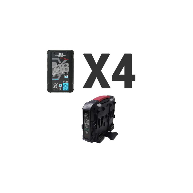 Kit from IDX with four DUO-C98P Battery and one VL-4X Charger.