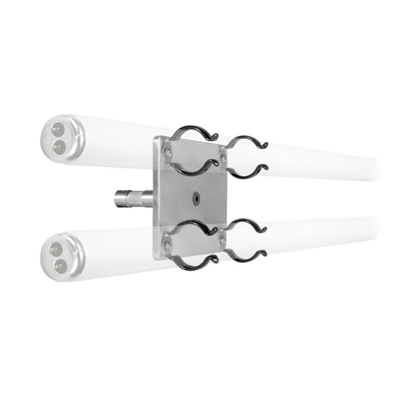 Designed with rubber covered clips to hold (2) T12 fluorescent tubes. Terminates in a baby (5/8) pin. Made from 6061 aluminum. Works for both kino and quasar tubes.