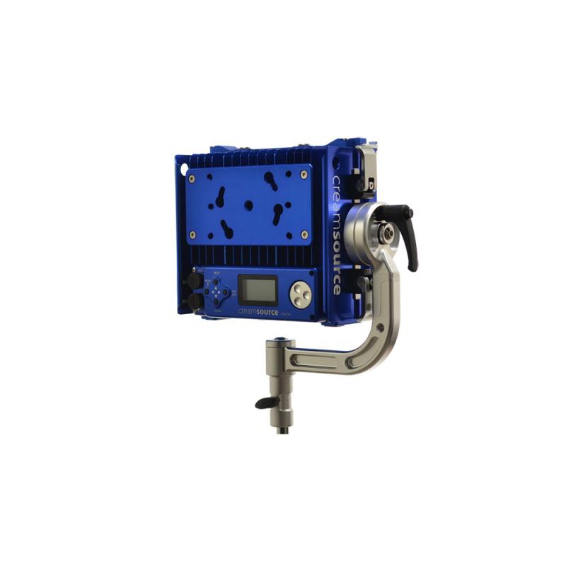 There are three main different rigging options: Quick release Yoke, Kino Flo Style Twist-on Mount, or single 3/8th Thread.