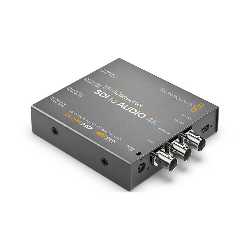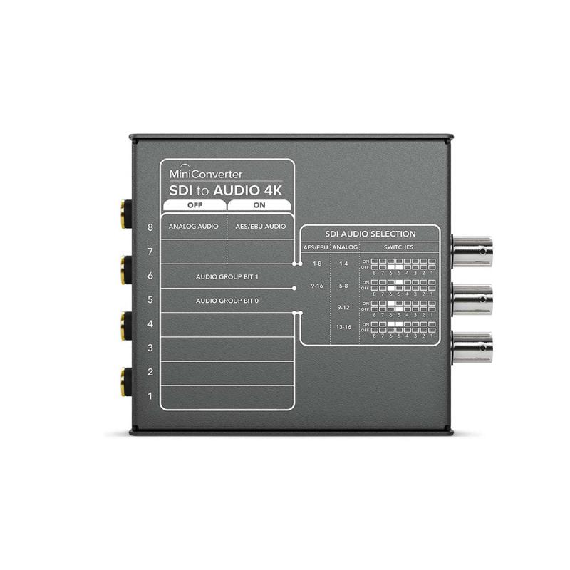 Mini Converter SDI to Audio 4K includes everything you need to de-embed 4 channels of analog audio or 8 channels of AES/EBU digital audio from any SDI video connection. Now you can access the audio in any SDI video connection for output to a massive range of audio equipment such as audio mixers, analog broadcast decks, audio monitors and more!
