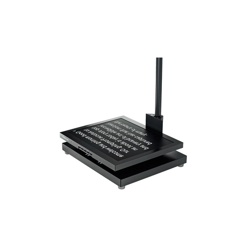 The monitors have a metal housing that?s lightweight and tough enough to survive for the long-haul. Simply rest them on the base of the conference stands and use the included splitter to run an HDMI cable to each one. The conference stand poles can be adjusted to place the glass at the perfect height to make the script visible to the speaker and you can be confident it will remain unseen by the audience thanks to Autocue 70:30 beamsplitter glass.