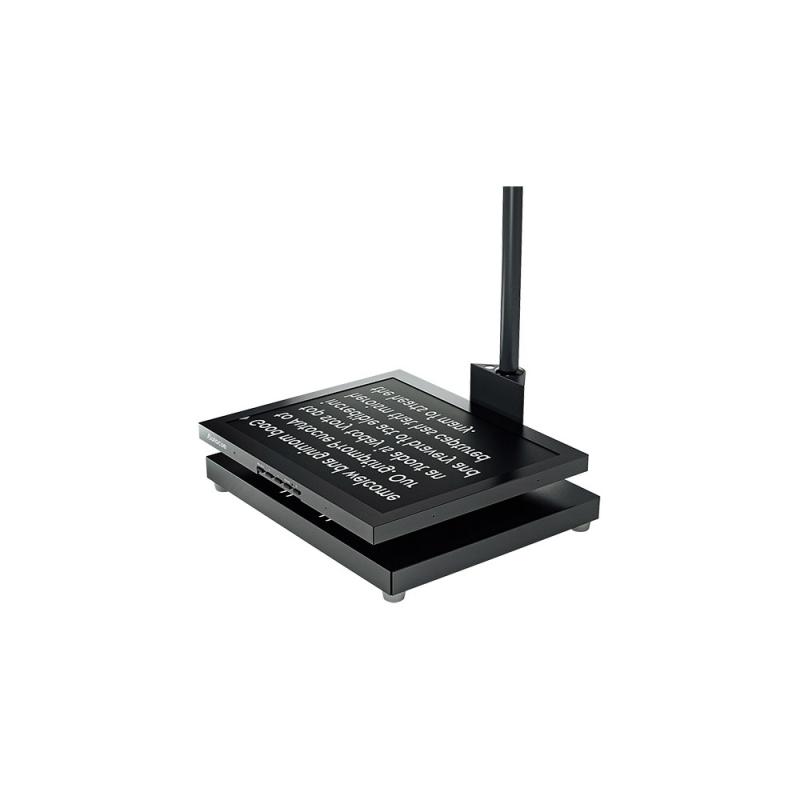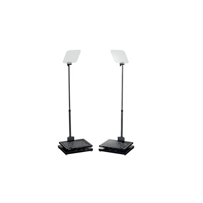 The monitors have a metal housing that?s lightweight and tough enough to survive for the long-haul. Simply rest them on the base of the conference stands and use the included adaptor to run an SDI cable to each one. The conference stand poles can be adjusted to place the glass at the perfect height to make the script visible to the speaker and you can be confident it will remain unseen by the audience thanks to Autocue 70:30 beamsplitter glass.
