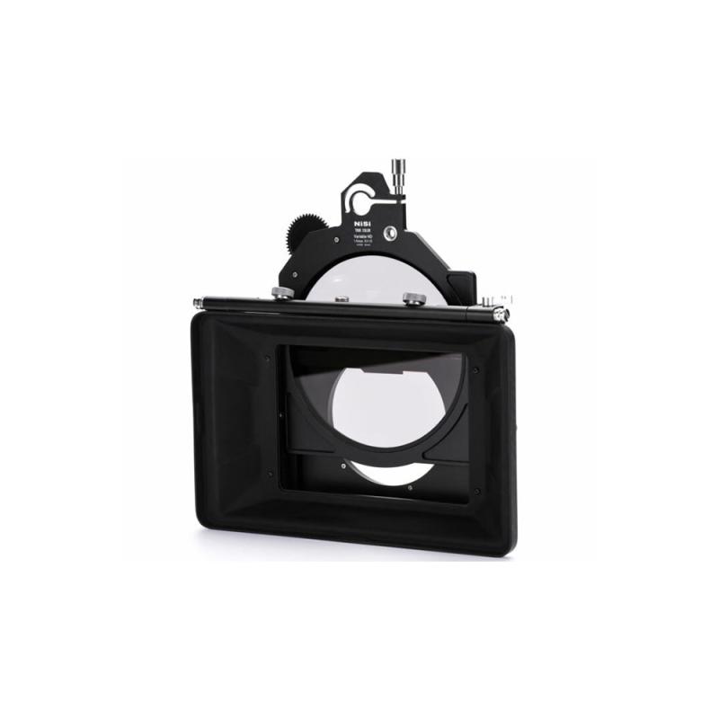 The NiSi Cinema 4x5.65? (6mm) True Color Variable ND 1-5 Stops (0.3-1.5) Filter includes a 15mm support rod to mount the lens motor and soft case.