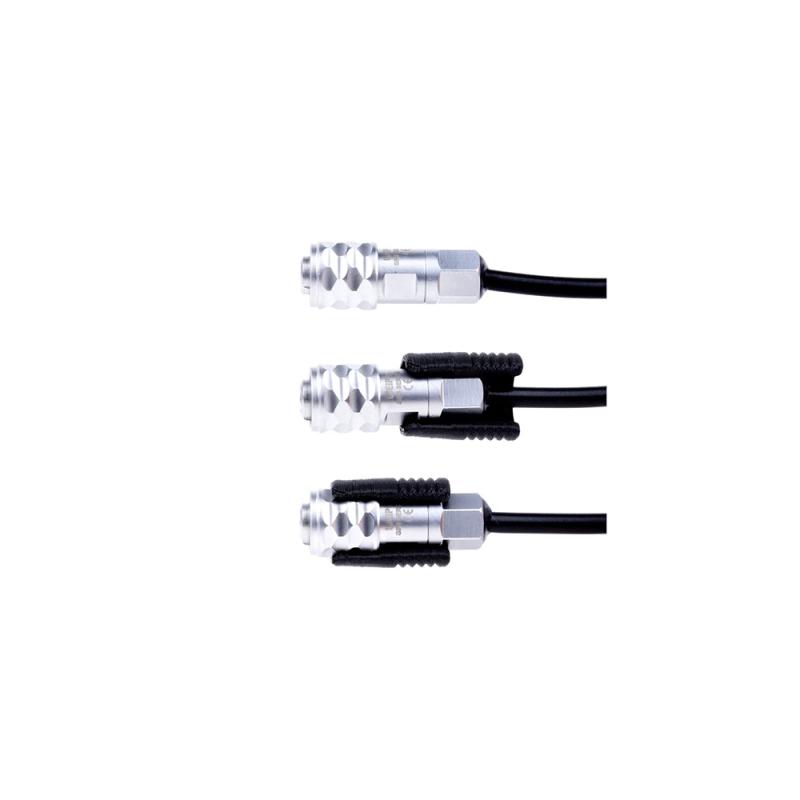 Power Grab is a pack of two 3D-printed sleeves that fit over the Blackmagic 2-pin Weipu connector to make it easier to install and remove when using adjacent cables.