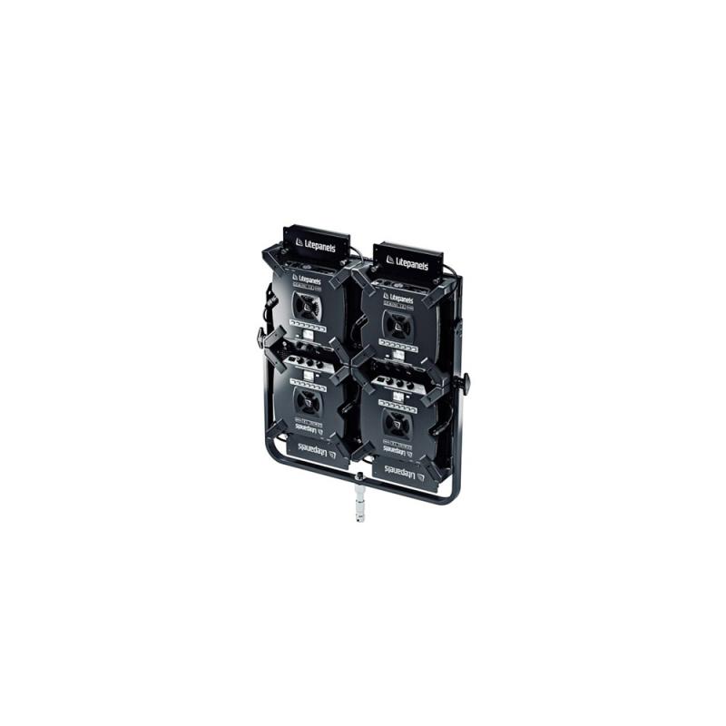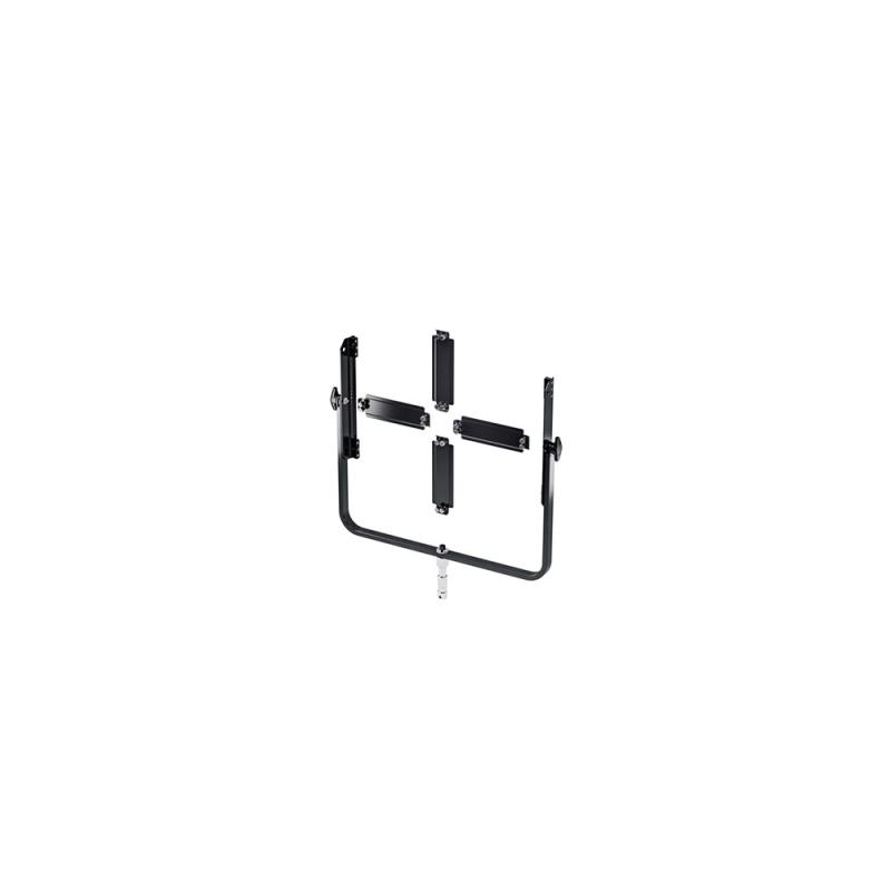 The Quad Gemini 1x1 Array Kit with Yoke for Gemini 1x1 from Litepanels allows four Gemini 1x1 panels to be mounted together in a 2 x 2 configuration. The yoke has a TVMP receiver to mount to either a baby pin or fit into a junior pin (1 1/8 in) receiver.