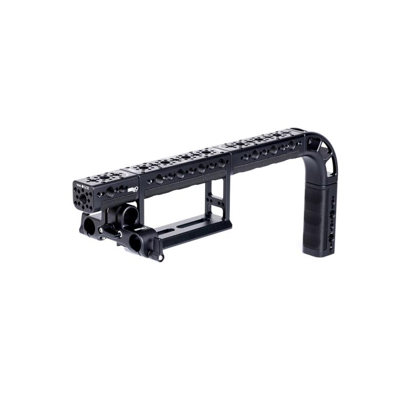 Rainbow Handle Kit is a modular handle system that can be configured in a variety of ways, including down behind the battery, commonly referred to as a Hollywood or Panavision-style handle.