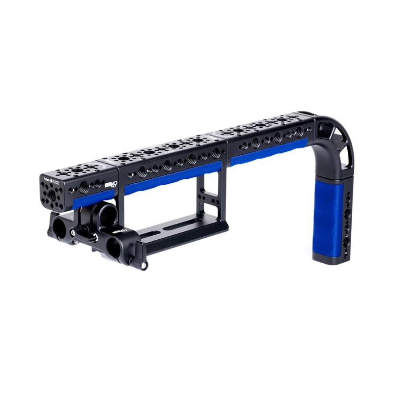Rainbow Handle Kit is a modular handle system that can be configured in a variety of ways, including down behind the battery, commonly referred to as a Hollywood or Panavision-style handle.