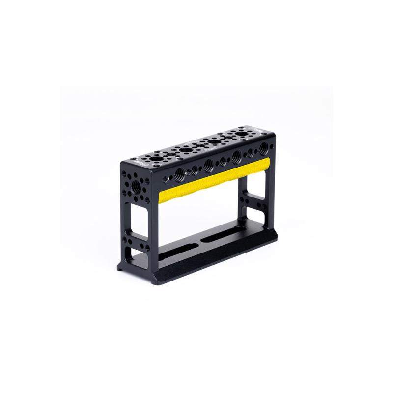 Rainbow Handle has an ARCA Swiss dovetail shape that interfaces with any MID49 Top Plate or Upper Cage, and many 3rd party ARCA clamps.