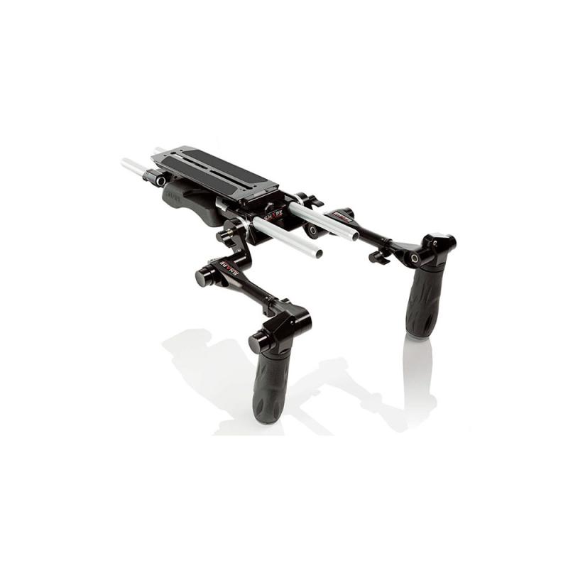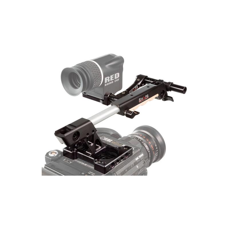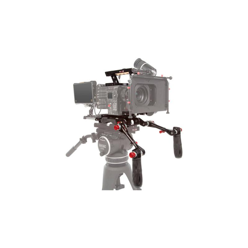 The Pro Bundle Rig from SHAPE is a camera support system designed for the RED DSMC2, WEAPON EPIC-W, SCARLET-W and RAVEN cameras. It includes the REVOLT VCT universal baseplate, a top plate with extendable top handle, and a pair of telescopic handles compatible with ARRI rosettes. All the kit components are made from CNC Machined aluminum. Both the baseplate, as well as the top plate, feature a magnet compartment for Allen key storage.