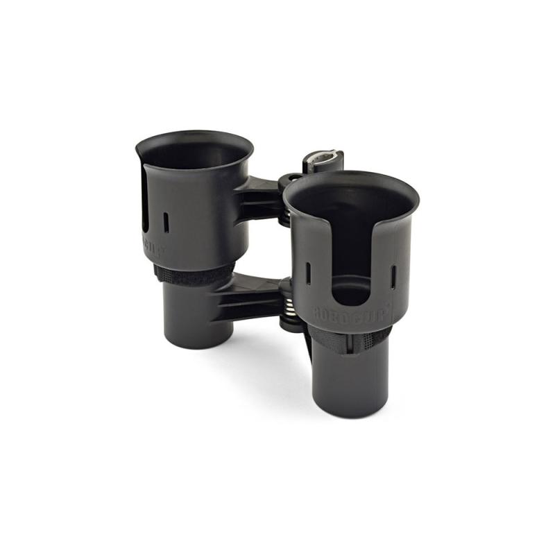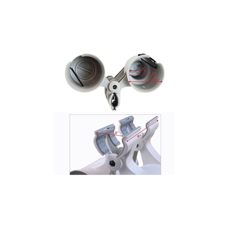 RoboCup Patented Portable Clamp-On Caddy Dual Cup Holder is a patented portable caddy holder that securely holds two drinks, cups, phone, tools, and more. It’s perfect for INOVATIV carts. With no tools required, RoboCup clamps instantly to both round and flat surfaces up to nearly 5 cm in size. To open (1) hold the RoboCup with the jaws facing away from you and (2) using both hands squeeze the cups inwards using your chest muscles and (3) clamp onto a surface using both jaws equally. The dual rubberized jaws are designed to be leveraged apart from each other and for maximum security can be locked using a 10 plastic cable-tie. The bottom caps are removable for access to clean the RoboCup and for long objects including flashlights and tools.
