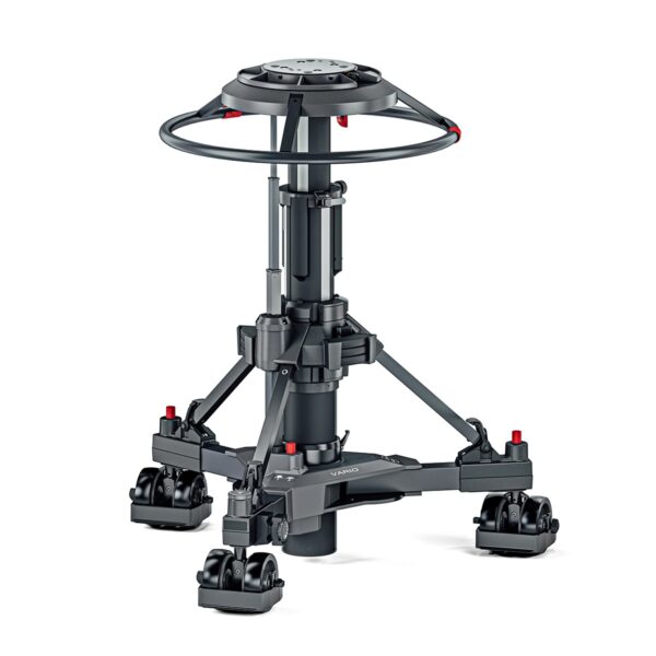 The functions of the Vario Ped 2-80 are perfectly matched to the requirements of Studio and OB daily life as it is a robust, reliable and protable solution that provides soft and precise movement delivering unparraled talent tracking and able to achieve seated and standing eyeline positions even at close range. It is a 2-stage pedestal for large payloads up to 80 kg / 176 lb in Studio and OB environment. Its smooth and precise on-air movement and On Shot Stroke Length of 77cm / 30.3 in is perfect for following talent moving from seated to standing postion 'on shot'. It has an inlet valve for any air source and a pressure gauge for clear and reliable set-up.The detachable skid allows the pedestal to be simply broken down into two sections for easy storage and transportation. The Vario Ped 2-80 has crab and steer functionality, allowing working in tight spaces and on shot direction changes. It comes with 12.5 cm / 5 inch wheels and adjustable cable guards.The skid has an easy to adjust position for narrow clearance. The steering wheel has easily accessible slots for trim weights, which can be used to quickly adjust the column pressure if the temperature changes during the shot.