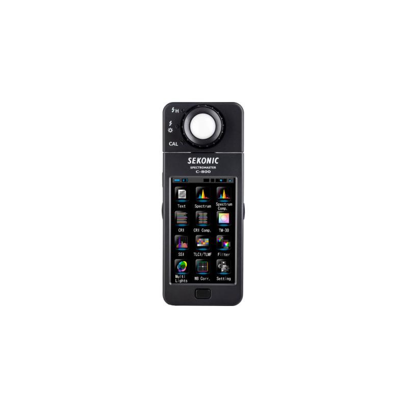 The Sekonic SpectroMaster C-800 is a full-spectrum colour meter that can precisely measure every kind of light including LED HMI Fluorescent and electronic flash. Its high-resolution measuring system featuring CMOS sensor enables capturing spikes in light source output to provide unsurpassed colour measurement accuracy. Different than any spectrometer today the C-800s direct display of values for major light source and lens filter brands simplifies correcting and modifying light colour for cleaner recording and faster post process.