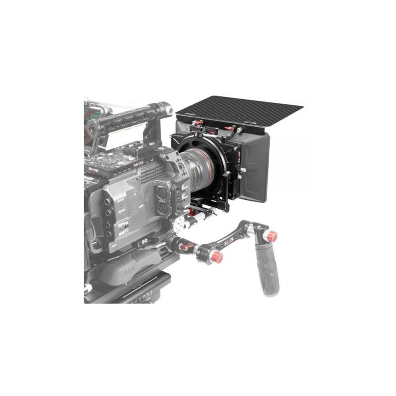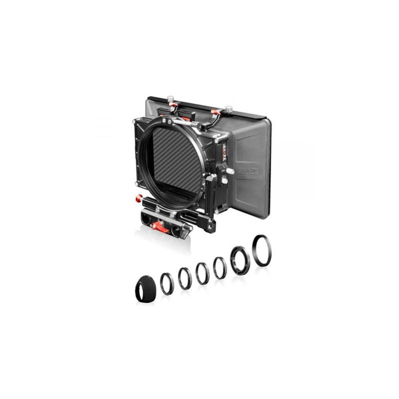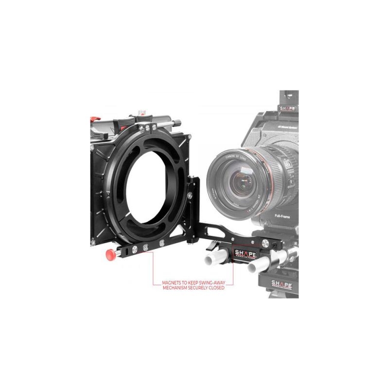 The SHAPE Matte Box Swing Away is a silicone matte box mounted on a CNC aluminum main frame with an outer diameter of up to 124 mm. It provides a wide field of view for a variety of wide-angle lenses.